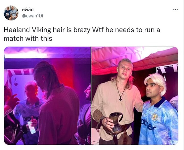 One supporter posted: 'Haaland Viking hair is brazy Wtf he needs to run a match with this.