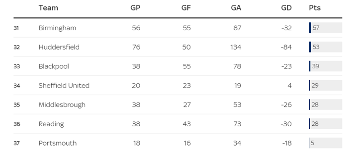 Everton (567) lag behind the leading pack in seventh, but West Ham (403), Stoke and Newcastle (both 391) make up the top half, despite the Potters currently competing in the Championship and both other sides struggling this term.