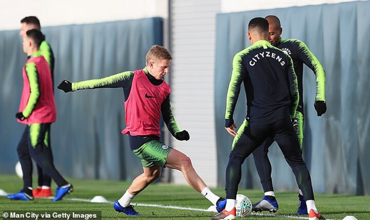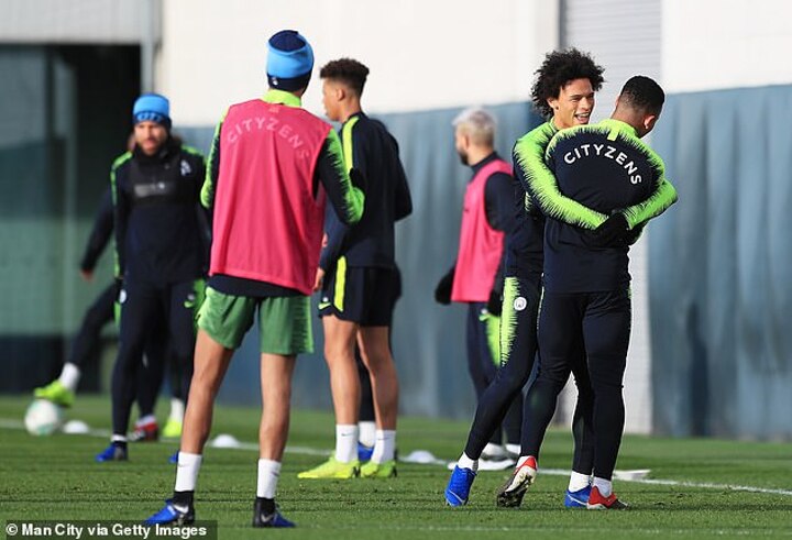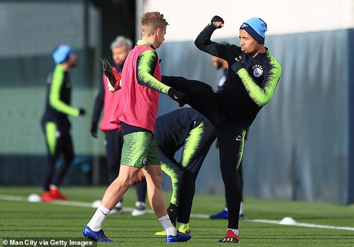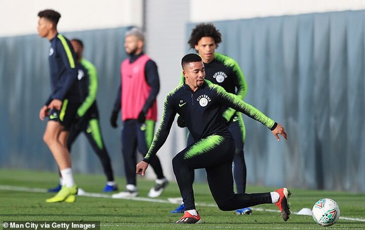 Jesus could be seen play-fighting with teammate Oleksandr Zinchenko, a young fringe player who may be called upon for the cup match.