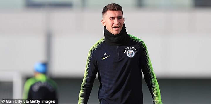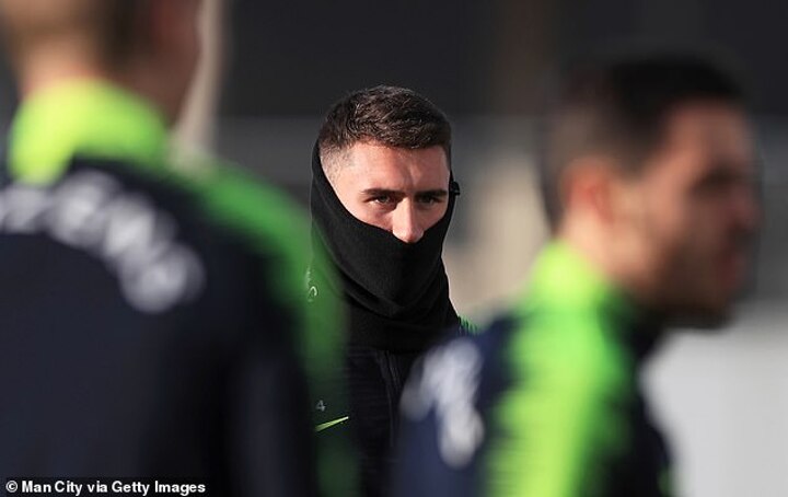 Aymeric Laporte was also present, and well-protected from the chilly Manchester conditions.