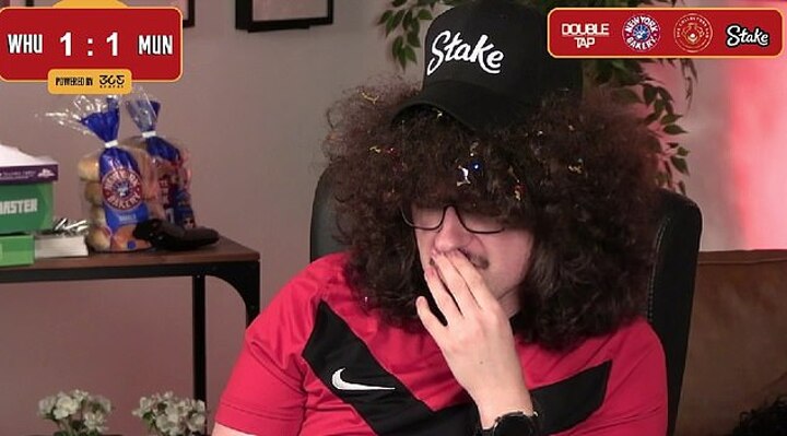 Ilett's live reaction to Tomas Soucek's goal for West Ham - that put the Hammers 1-0 up - in front of almost 100,000 viewers on streaming site Kick said everything. The afro-toting social media star held his head for several seconds, before consoling himself with the encouragement: 'There's plenty of time, plenty of time.'