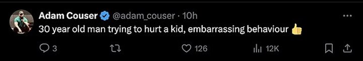 Another said: '30 year old man trying to hurt a kid, embarrassing behaviour'.