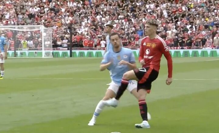 Manchester United fans have criticised Man City's Bernardo Silva for a late challenge on Alejandro Garnacho – and have said the City midfielder has form for over-the-top challenges.