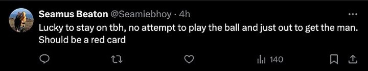 'Lucky to stay on tbh,' one fan wrote. 'No attempt to play the ball just out to get the man. Should be a red card'.