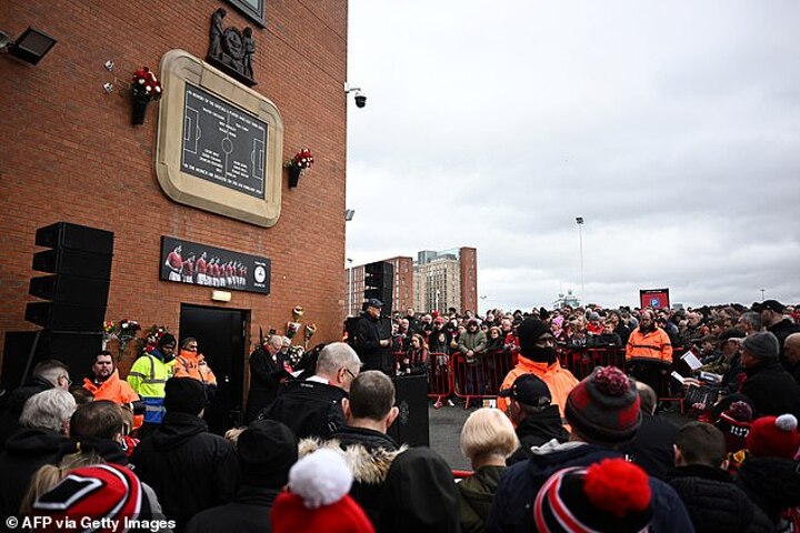 Manchester United fans gathered outside Old Trafford on Sunday afternoon to pay their respect to the 23 people that passed away in the Munich air disaster.