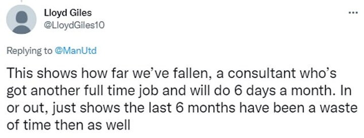 'How does he have a job seriously,' one United fan wrote on Twitter, while another simply just said 'snake' with a broken heart emoji.