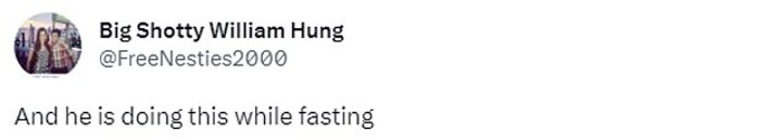 A fifth tweeted: 'And he is doing this while fasting,' in reference to the month of Ramadan.