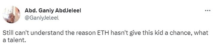 One continued: 'Still can't understand the reason ETH hasn't give this kid a chance, what a talent.'
