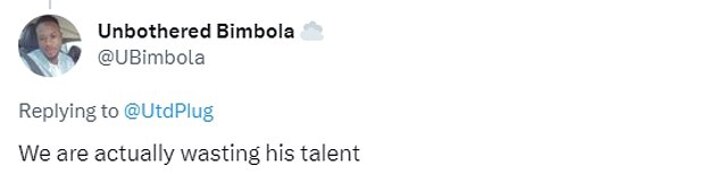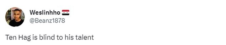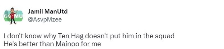 A second added: 'I don't know why Ten Hag doesn't put him in the squad. He's better than (17-year-old midfielder Kobbie) Mainoo for me.'