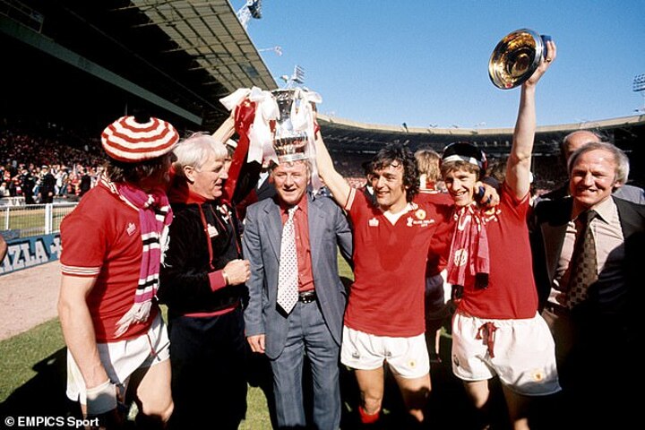 Then there’s the sweetest memory of all. May 21, 1977. The pinnacle of Docherty’s Old Trafford reign. The day United beat Liverpool 2-1 in the FA Cup final to deny their rivals a chance of the Treble four days before the English champions won their first European Cup. That image of the manager on the pitch at Wembley with the lid of the cup on his head.