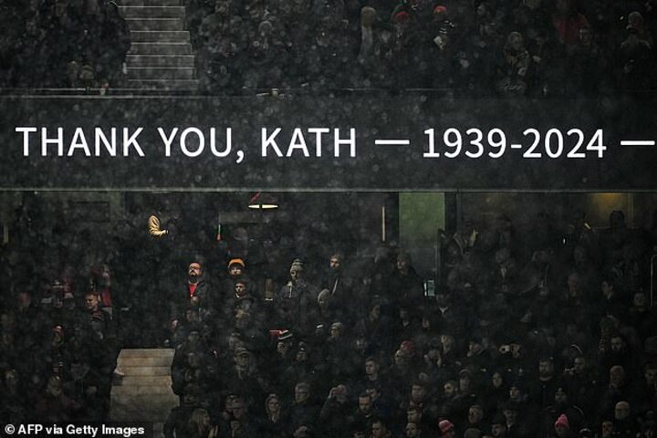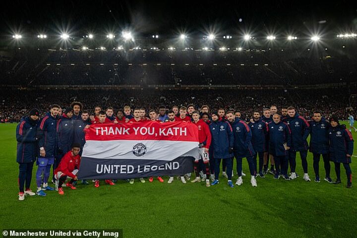 Players also held out a banner which read: "Thank you, Kath. United legend." And there was a minute of silence followed by applause before kick-off.