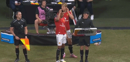 The pair squared up in a heated exchange as play continued, and moments later, United conceded a bizarre own goal, with Amad Diallo kicking the ball into his own net.
