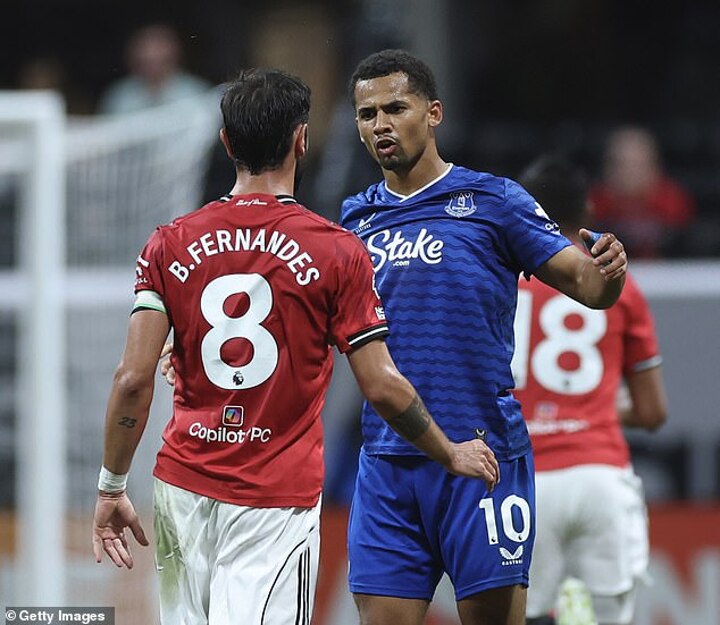 Manchester United captain Bruno Fernandes and Everton forward Iliman Ndiaye were involved in a fiery confrontation during their sides' 2-2 draw in Atlanta.