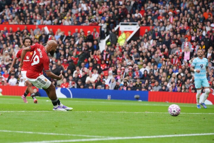 BRUNO FERNANDES held his nerve to score a stoppage time penalty and hand Manchester United their first win of the season.