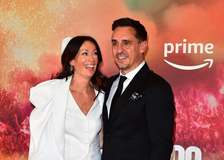 Neville, 49, also beamed alongside wife Emma Hadfield as he made his way into the event.