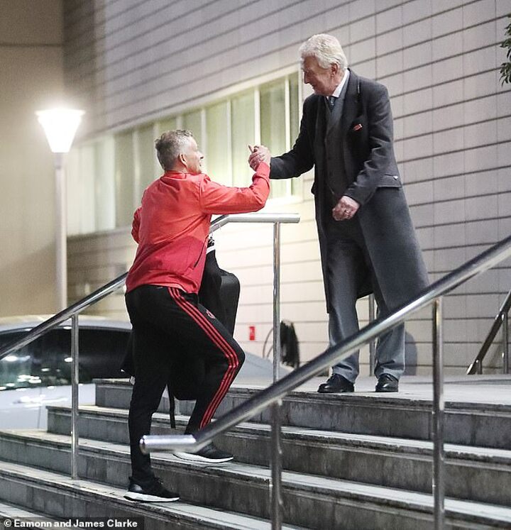 Boss Ole Gunnar Solskjaer, who has earned praise since arriving at the club in December, had a friendly greeting for a member of hotel staff as he made his way into the building.