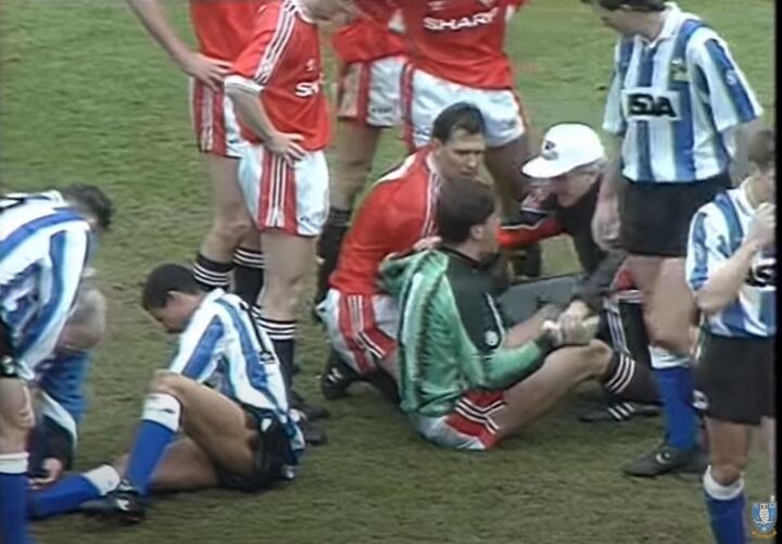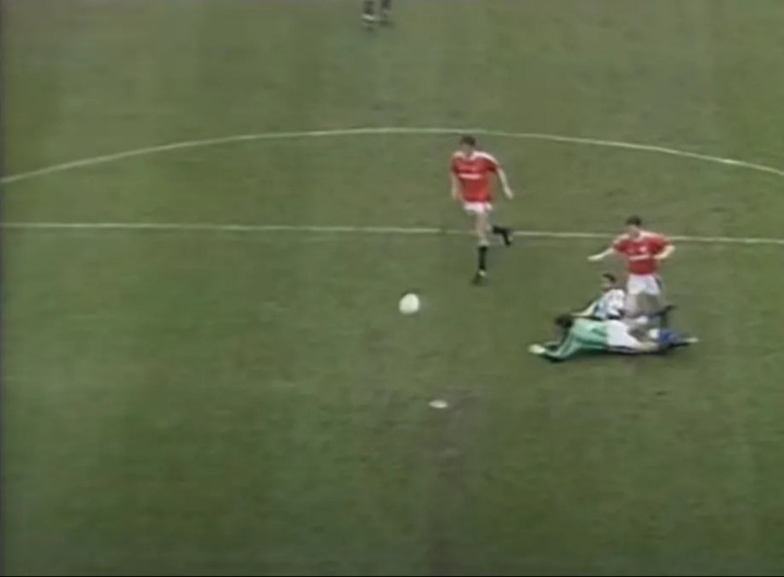 Incredibly, though, Sealey CARRIED ON - because there was no sub goalkeeper on Fergie’s two-man bench to call upon and replace him.