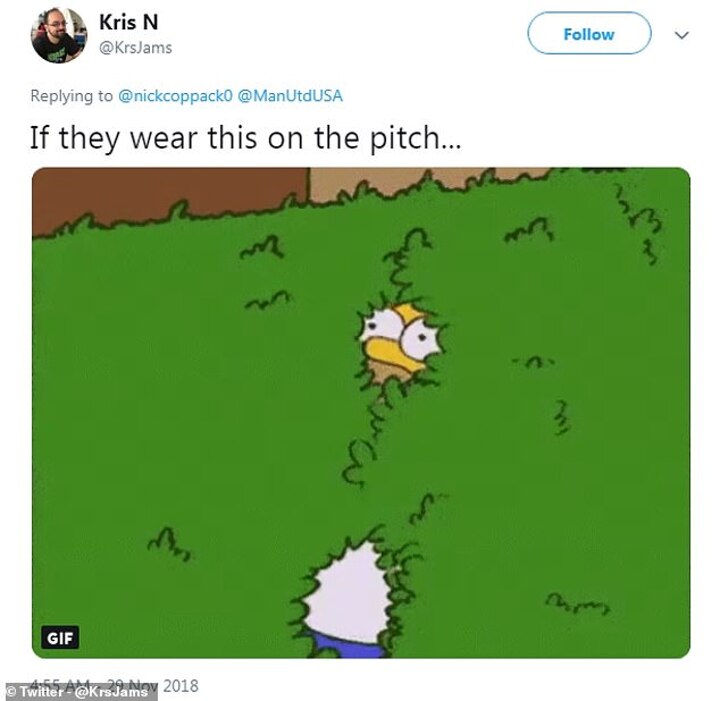 One Twitter user included a GIF of Homer Simpson retreating into a hedge alongside the caption: 'If they wear this on the pitch...'