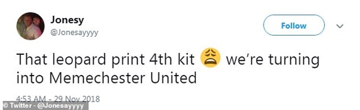 Another said: 'That leopard print 4th kit, we're turning into Memechester United.'