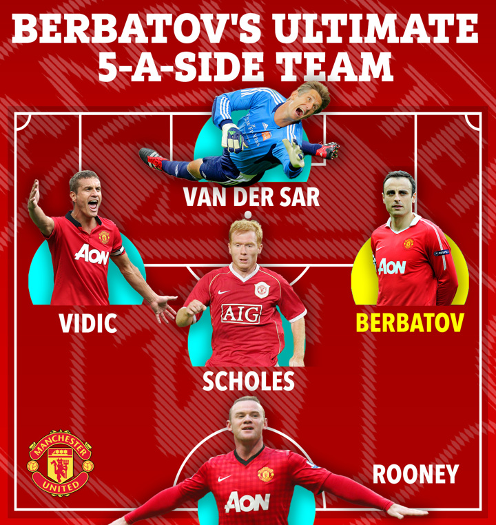 MANCHESTER UNITED and Tottenham legend Dimitar Berbatov has named his perfect five-a-side team made up of former team-mates... and there is NO Cristiano Ronaldo or ANY Spurs players.