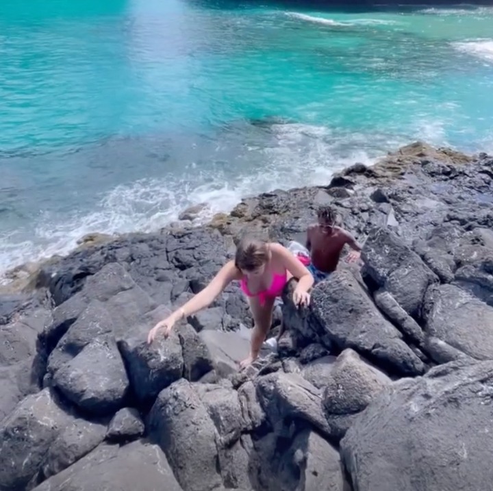 In what appears to be a blissful summer getaway, Monique also posted a video of her and Fred scaling a rock face by the sea.