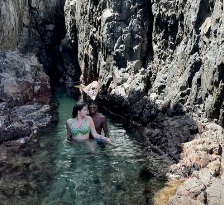 The couple shared a kiss as they posed for a picture on Fernando de Noronha, a tiny volcanic island 200 miles off the coast of Brazil.