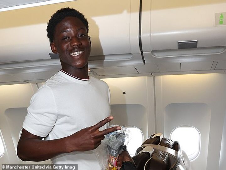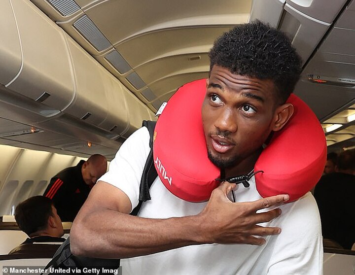 Exciting prospects Amad Diallo and Kobbie Mainoo were also pictured getting on the flight, with the youngsters aiming to prove they can be a part of Erik ten Hag's first team plans for the coming season.
