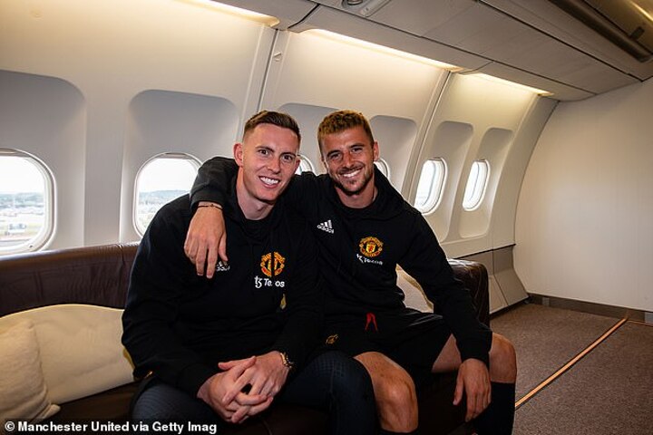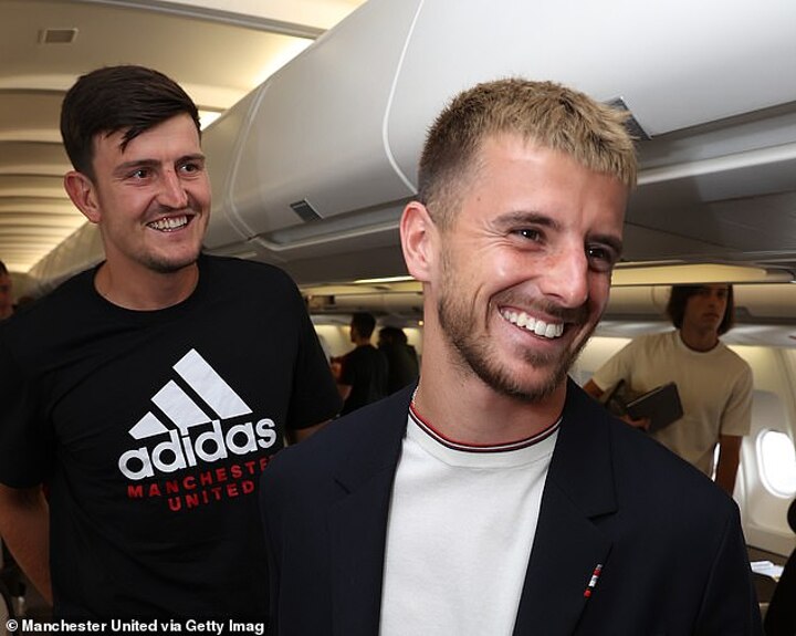 Despite uncertainty surrounding his future, Maguire appeared in good spirits as he boarded the plane with international team-mate Mason Mount, who later posed for a photo with goalkeeper Dean Henderson.