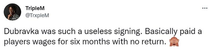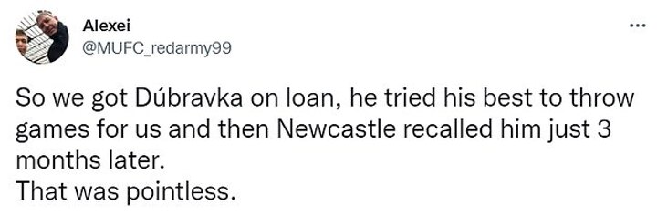 One United fan stated that the signing of Dubravka was useless. They wrote: 'Dubravka was such a useless signing. Basically paid a players wages for six months with no return.'