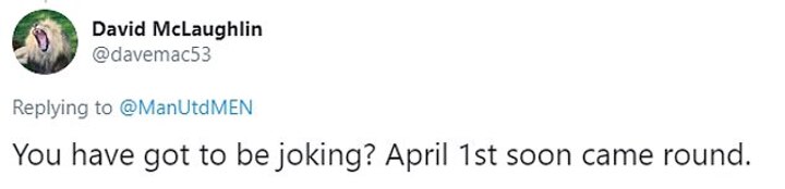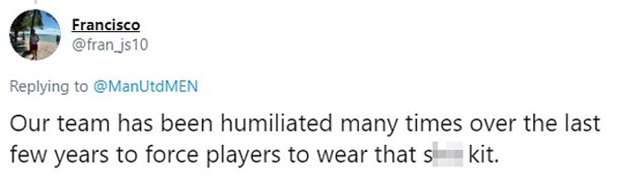 Another Twitter user responded saying: 'Our team has been humiliated many times over the last few years to force players to wear that s*** kit,' while another added: 'You have got to be joking? April 1st soon came round.'