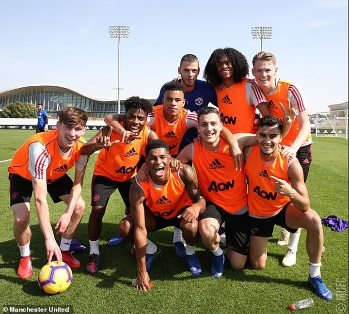 On Wednesday, United shared a photo of the day's 'winning team' from the final day of their training camp in Dubai, with goalkeeper David de Gea the only player over the age of 23.