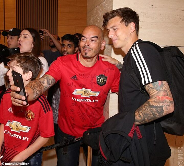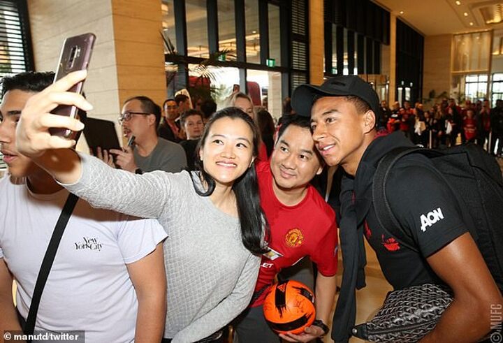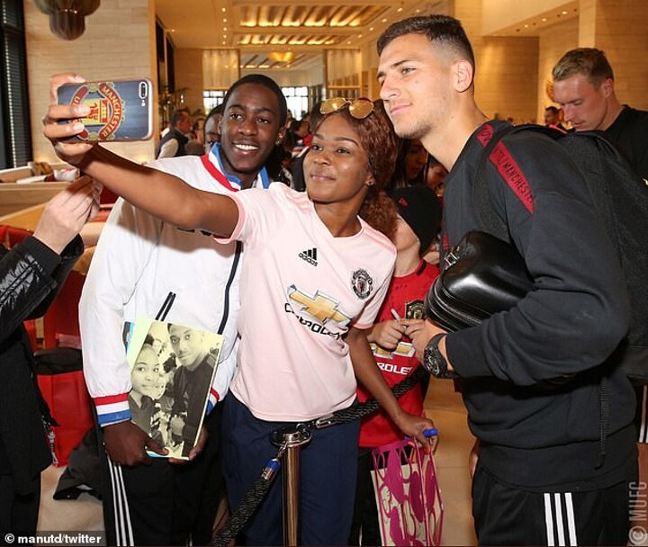 Manchester United players stopped to sign autographs and take photos with fans before they flew off to Singapore for the next step of their pre-season tour.