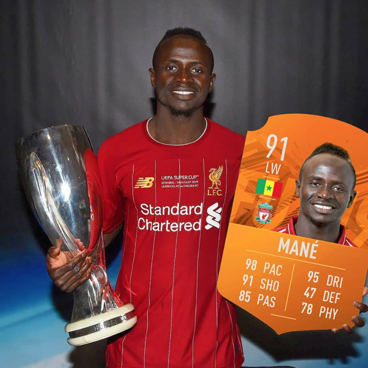 Sadio Mane posts with his 91-rated FIFA 19 special MOTM card alongside UEFA Super Cup trophy. In which point is the Senegalese underrated?