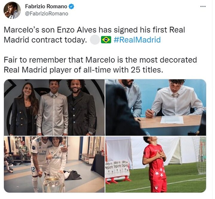 Enzo Alves, son of legendary Real Madrid defender Marcelo, signed his first contract with Real Madrid on Saturday.