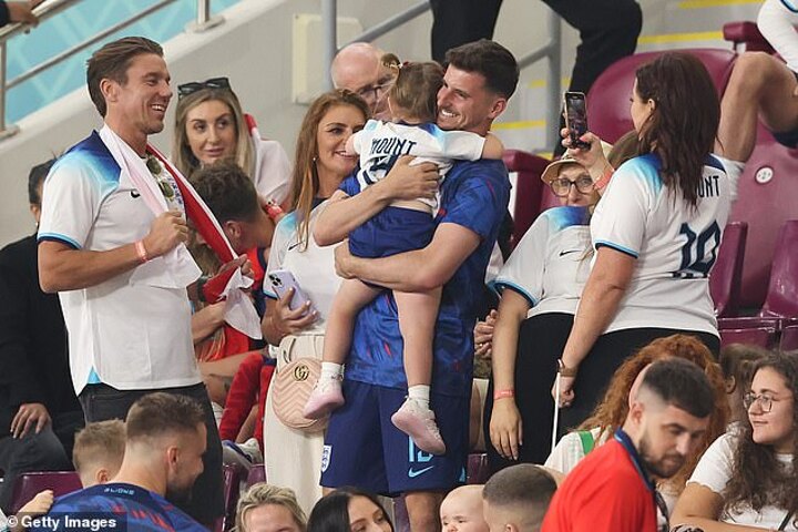 Mount picked up his niece, who was wearing an England shirt with his name, and cuddled her tightly and high-fived other children in his family.