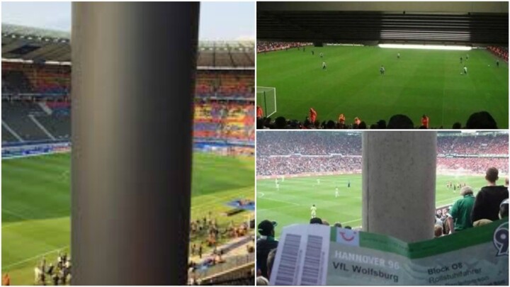 Stadiums like Liverpool's Anfield, Queens Park Rangers' Loftus Road, Hertha BSC's Olympic Stadium in Berlin and the Hannover Arena are examples where a column, wall or even a stand above can block the view.
