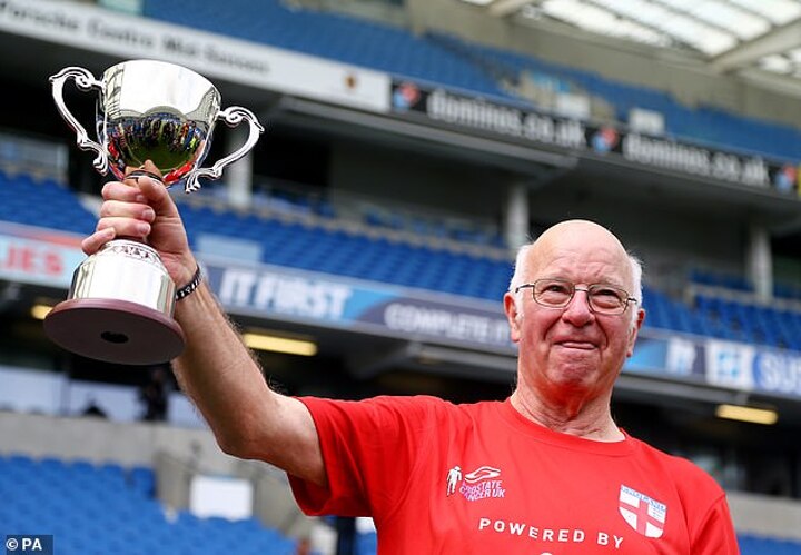 Charlton made his England debut at the age of 72 in 2018 in the world's first walking football international.