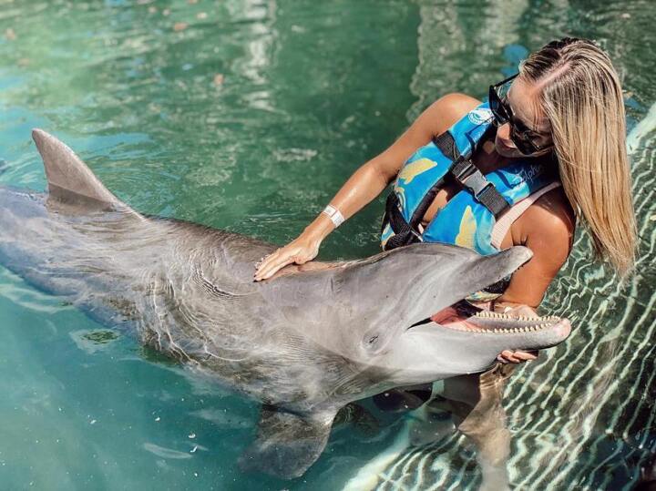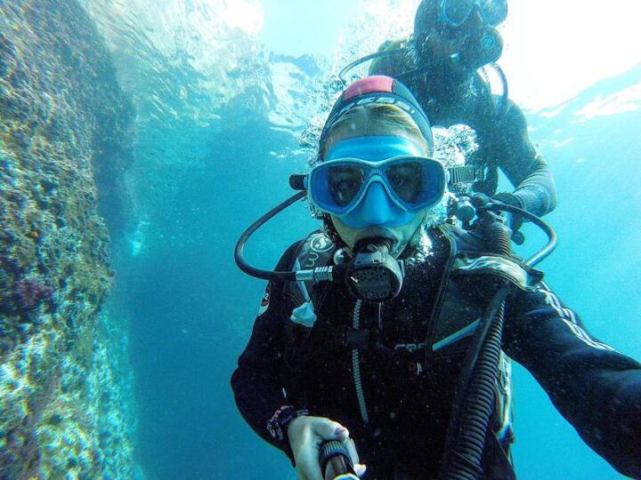 She has also shared pictures of her snowboarding, swimming with dolphins, and scuba diving.