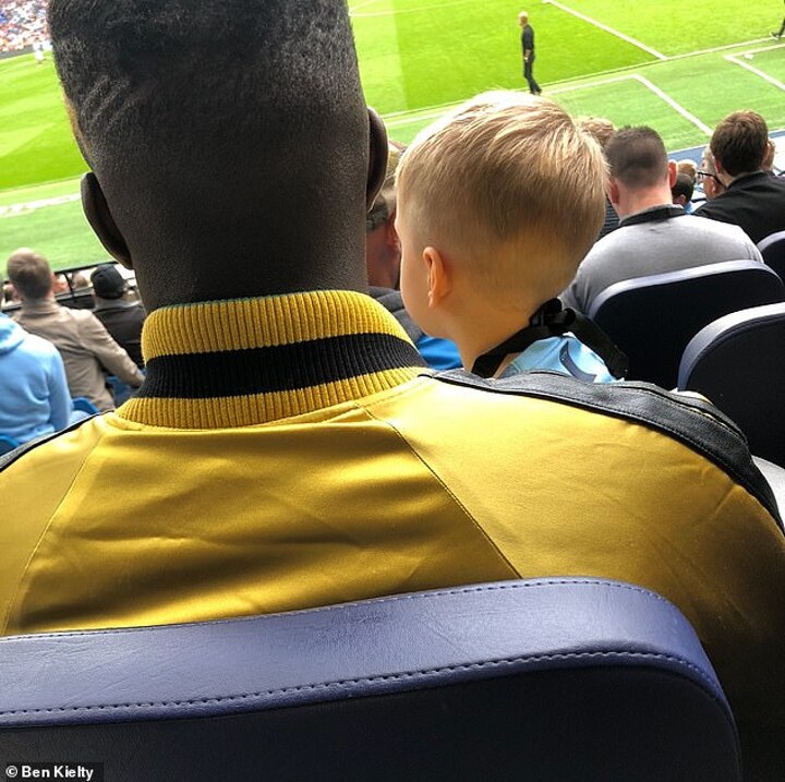 'I didn't want to take the mickey so Ben had a Coke and we sat with Mendy and his friends who were all really friendly.' For the second-half, things got even better. 'We went back out and he's picked up Ben and sat him on his knee to watch the second-half. Honestly, he's looked after him and talked to him for about 20 minutes. He didn't even hand him back – Ben junior just came back to sit with me when he wanted to.'
