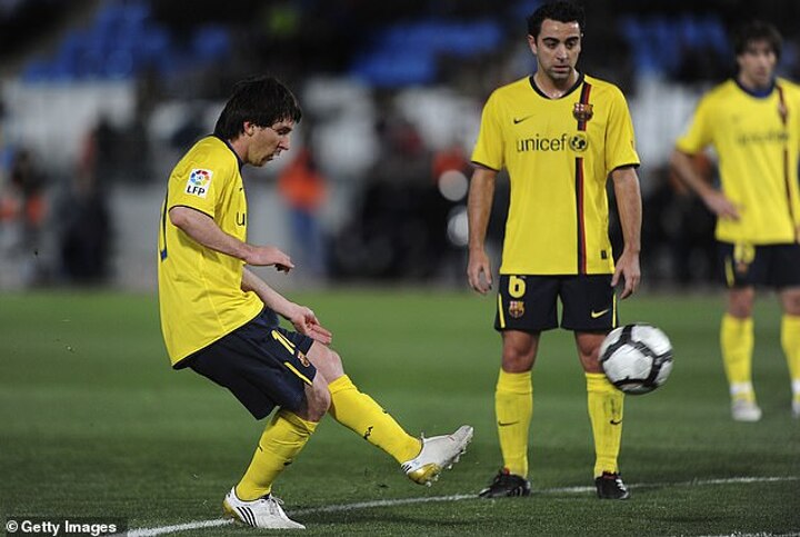 A video has resurfaced showing Messi dinking the ball over the wall from the edge of the penalty area against Almeria as a 22-year-old in 2010.