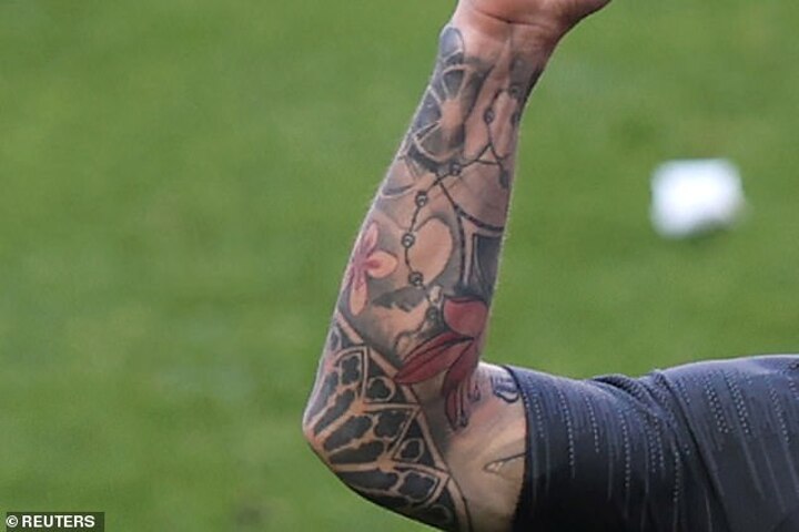 Another tattoo which has caused some conjecture involves the rosary on the right forearm of the Argentine.