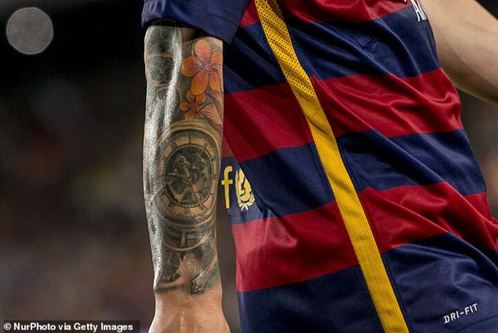 The image of Christ aside, there are several other interesting pieces of art along Messi's sleeve, including three flowers and several clocks - perhaps signifying the preciousness of time.