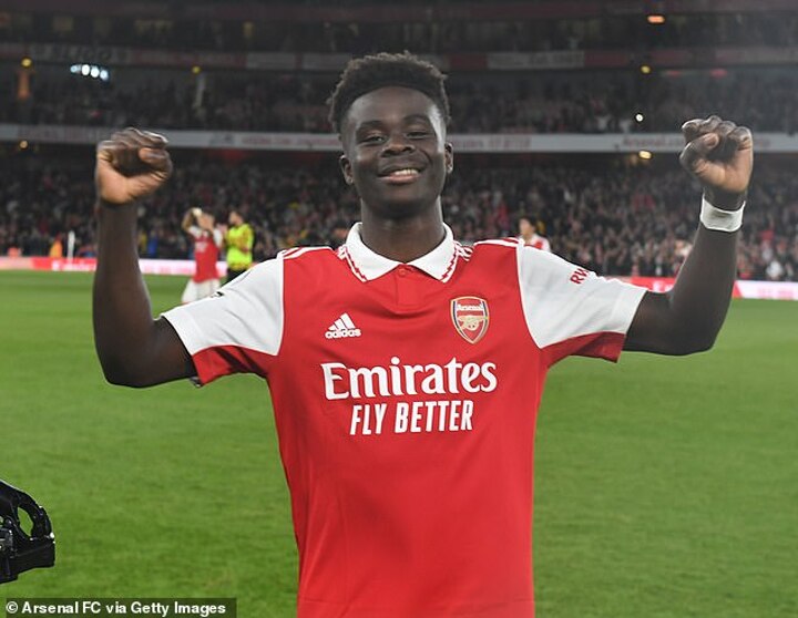 He said: 'Just love for my boy @BukayoSaka87. Rocking the Premier League ... #YaGunnersYa #ARSLIV.'
