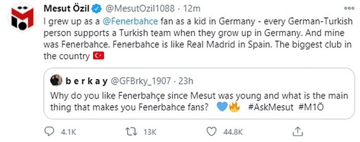 He teased fans by saying: 'I grew up as a Fenerbahce fan as a kid in Germany - every German-Turkish person supports a Turkish team when they grow up in Germany.