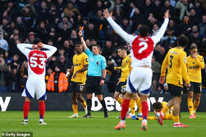 Oliver had shown Arsenal teenage Lewis-Skelly a straight red card during the first half of the match at Molineux after his cynical challenge on Wolves' Matt Doherty.