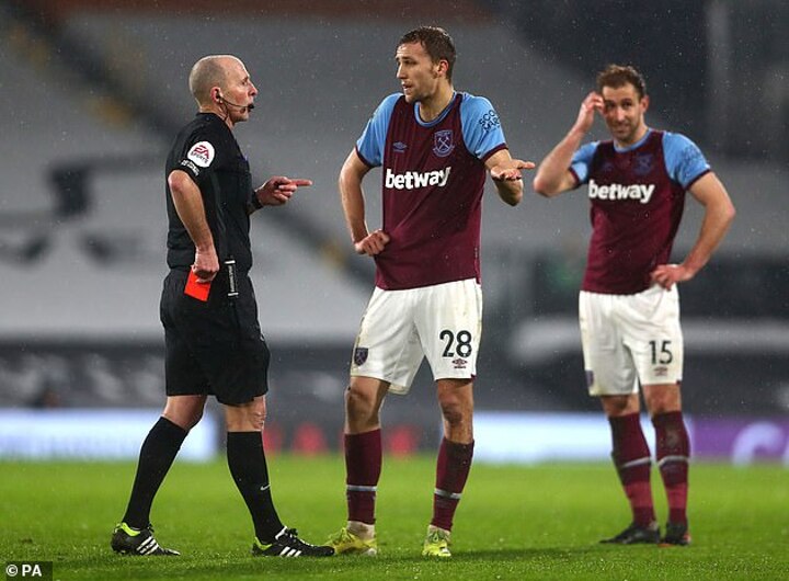 The referee showed a red card to West Ham midfielder Tomas Soucek for catching Aleksandar Mitrovic with his elbow late on during the goalless draw at Fulham and also sent off Southampton defender Jan Bednarek in the 9-0 defeat at Manchester United.