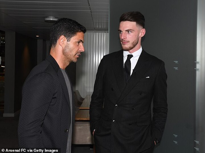 Commenting further on Rice's arrival, Arteta told Sky Sports: 'You all know his leadership, personality, and the experience he already has at 24. He's already close with some of the boys, he knew a few of the boys from the England camp as well.'