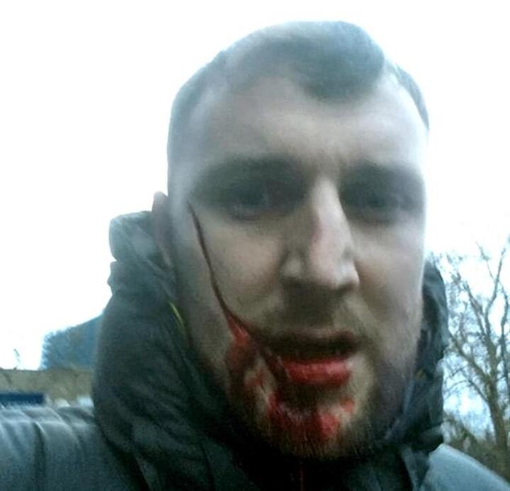 The injured Everton supporter posted a picture on social media showing a long scar down the right side of his face.