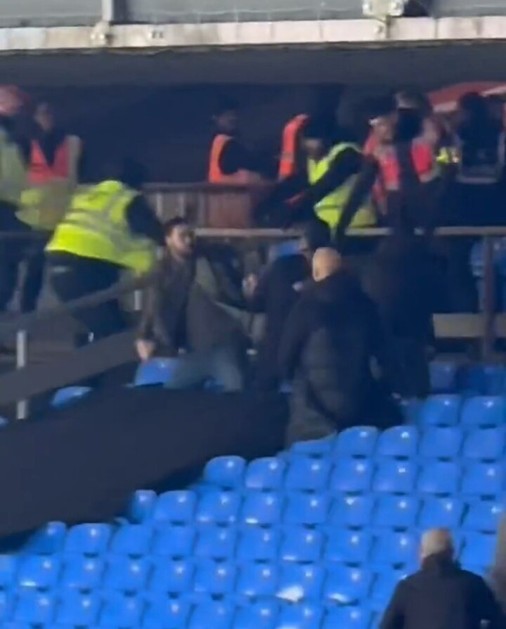 Security were then able to intervene and separate the home supporters from the Millwall fan.