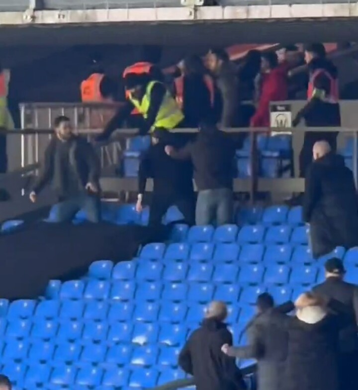 A video circulating on social media shows one fan climbing over from the Millwall end into the Palace end.
